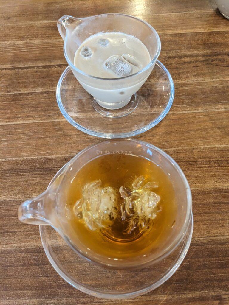 注文は各店1階にて行いますが、席の利用は珈琲韓薬房(1~2階)と惠民堂(1~3階)どちらも利用可能との案内文が入口にありました。