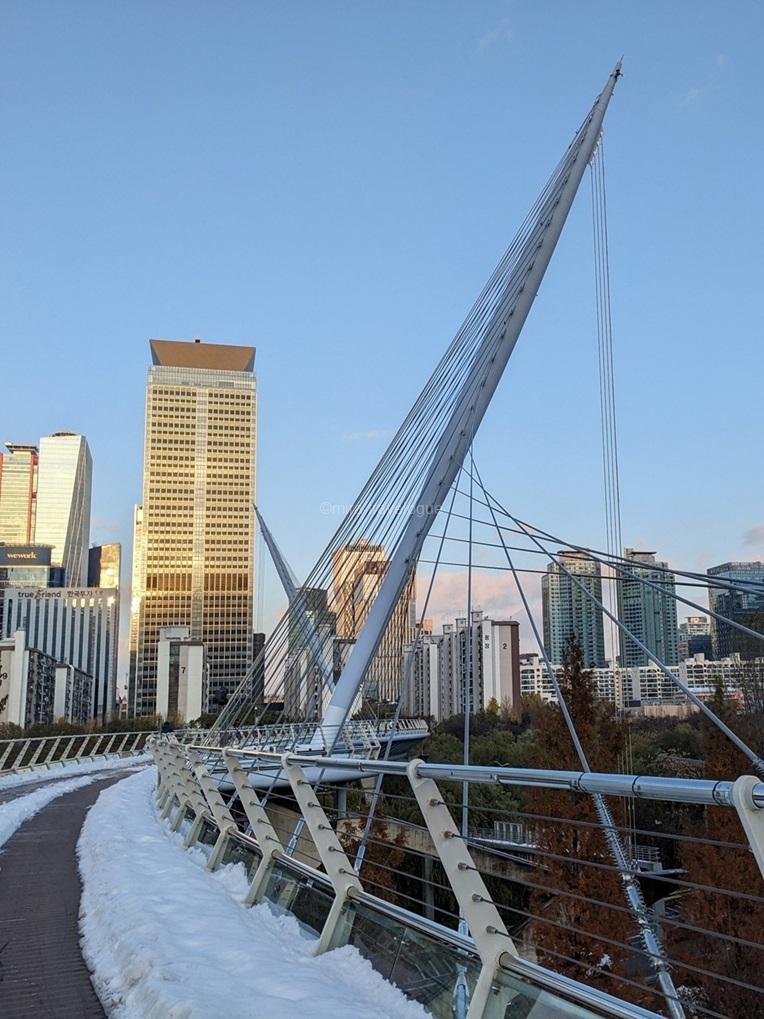 セッカン生態公園の上を通る新吉駅と汝矣島を結ぶ歩道橋で、曲線の美しい素敵な橋でした